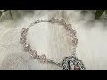 These rosary beads are meticulously designed, featuring 7mm pink briolette crystal beads for the 'Hail Mary' beads, and a striking Amethyst-coloured crystal for the 'Our Father' bead beneath the centrepiece.