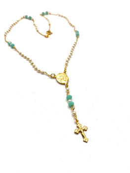 Gifted Memories Faith presents an exquisite addition to your spiritual collection – the 18kt Gold Dipped and Opal Rosary Beads. These beautiful beads feature delicate 4mm white faux pearls linked together by stunning 18kt gold dipped links, complemented perfectly by opal 'Our Father' beads measuring 6mm long.