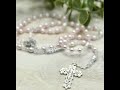 This handmade set of Catholic Swarovski Crystal rosary beads would make a beautiful gift for a new baby girl or boy, girls baptism gift, christening gift, or for older girls and boys celebrating their first communion or confirmation.
